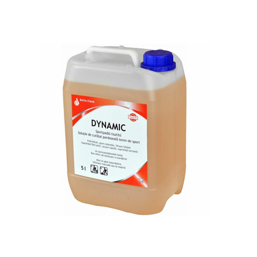 Dynamic sportpadló tisztító egy oldószertartalmú, enyhén habzó, lúgos kémhatású tisztítószer koncentrátum, mely jól oldja az olaj és zsírtartalmú szennyeződéseket. Kiválóan alkalmas oldószerálló anyagok és padlóbevonatok tisztítására. Minden vízálló, kemény és rugalmas padlón használható, mint pl. PVC, gumi, linóleum, nedvszívó természetes és műkő. Hatékonyan távolítja el a felületről a cipőnyomokat, gumicsíkokat. ÖBLÍTÉSMENTES.