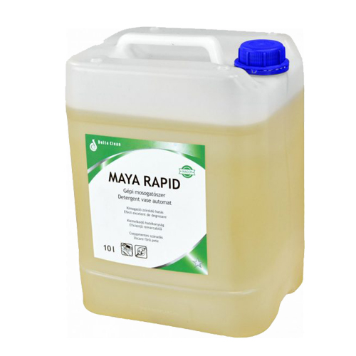 A Maya Rapid nagy hatékonyságú klór-és foszfátmentes folyékony gépi mosogatószer, mely alkalmas poharak, éttermi tányérok, konyhai eszközök mosogatására.